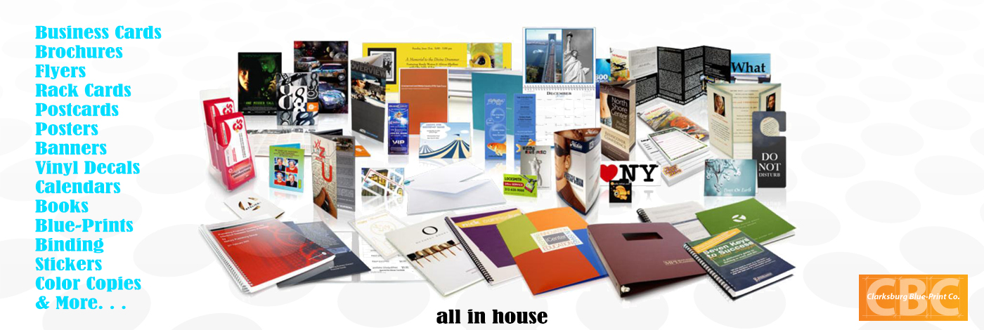 Business Cards, Brochures, Flyers, Catalogs, Postcards, Rack Cards, Booklets, Menus, Stickers, Calendars, and more.